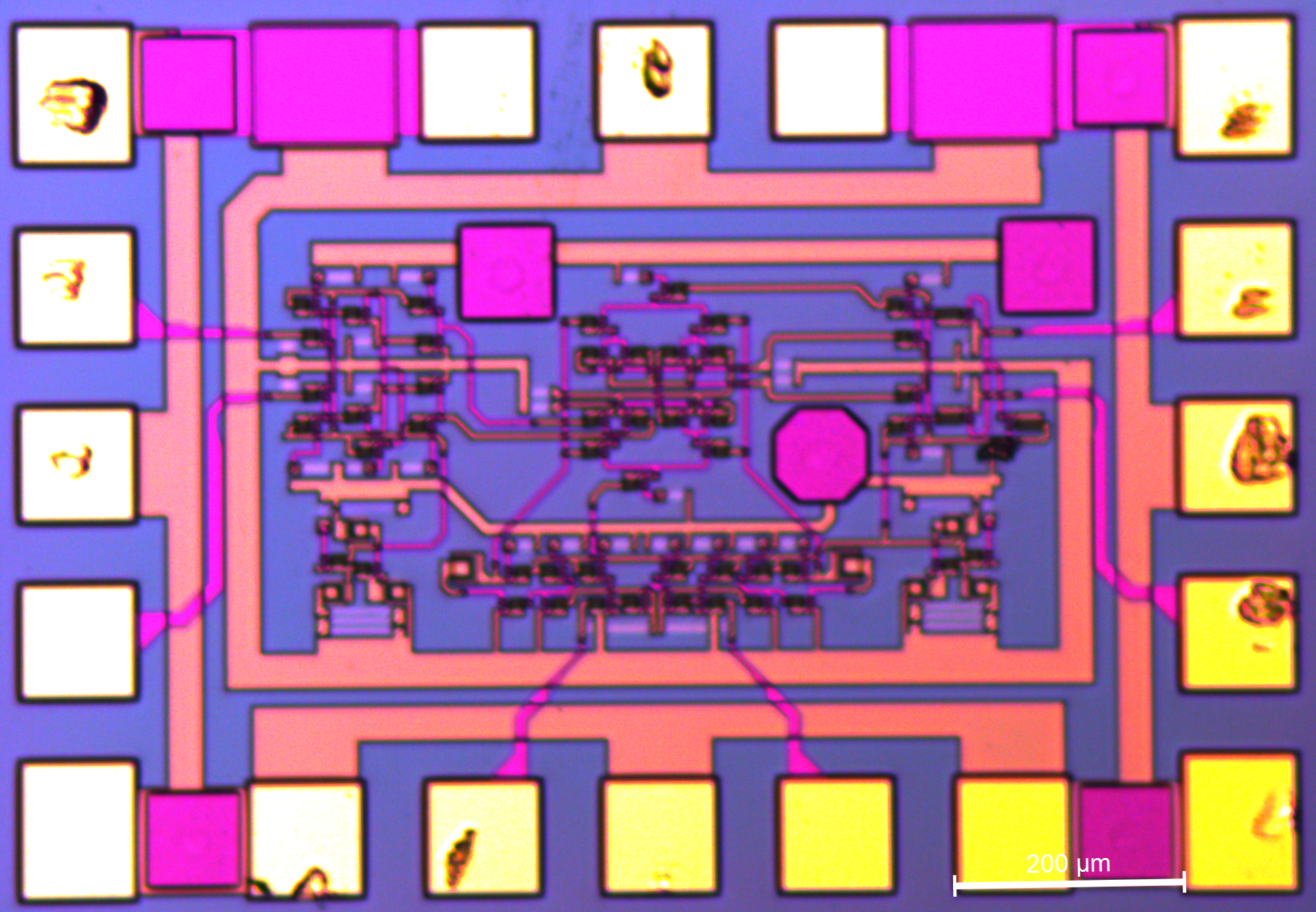 The comparator was fabricated in WIN 1µm InGaP/GaAs HBT technology; see the chip’s microphotograph in Figure 5. It occupies an area of 1mm × 0.74mm.