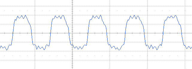 Figure 7: Measured differential output waveform with 15GHz clock and 1GHz input (x: 1ns/div, y: 50mv/div)