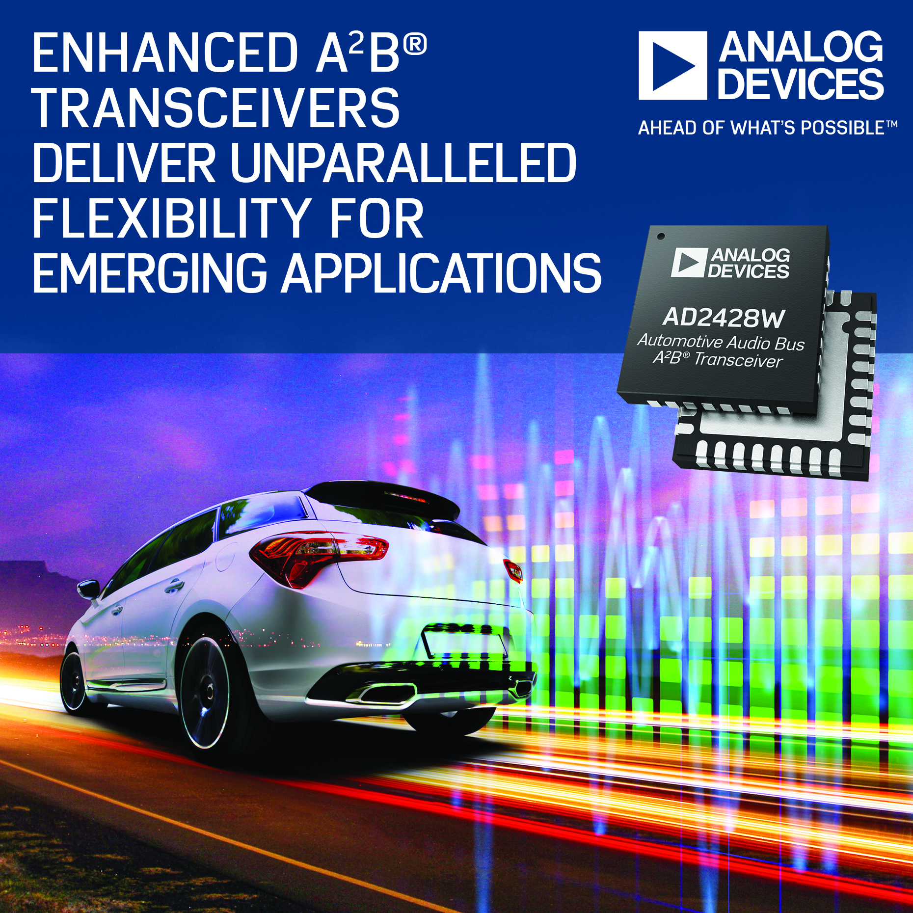 Analog Devices, Inc. (ADI) announced today three enhanced Automotive Audio Bus (A2B®) transceivers that deliver unprecedented capability to tailor system-level performance to even the most stringent electromagnetic compatibility (EMC) requirements.